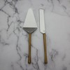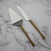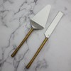 Our Camellia Cake Serving 2 Pc. Set showcases vintage gold handles that fit comfortably in the hand. A high polished stainless steel knife and cake server give this set a modern edge. Round, organic handles are contrasted with glossy utensils to enhance the luxurious aesthetic of this artisan silverware.