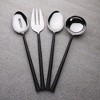 Our Sundance Black 4-Pc. Hostess Set brings rustic elegance to contemporary and classic table settings. It features highly polished stainless steel utensils contrasted with organic textured handles, finished in burnt black. Laid-back and elegant, this unique hostess set is perfect for everyday dining or a gathering of friends.