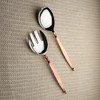 The Twisted Urban Salad Serving 2 Pc. Set serves up the salad with an artistic flair! Hand-hammered twisted handles finished in antique copper contrast beautifully with the highly polished serving fork and spoon. Crafted to last, this distinctive set complements classic and contemporary dinnerware.