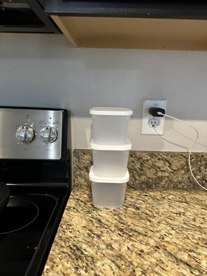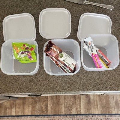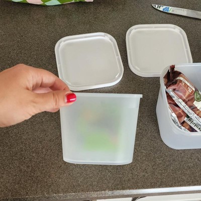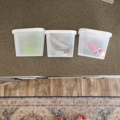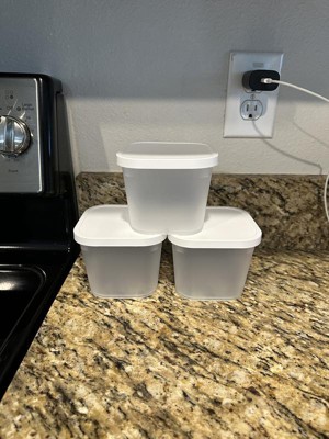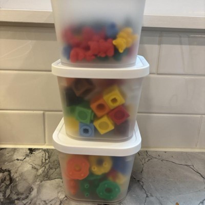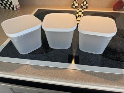 [This review was collected as part of a promotion.] Pretty good price for three containers that work really well for household storage. They are recommended to be hand-washed only, so that complicates things a little too much for me for food use. They have a cloudy/frosted design that blurs contents that aren’t pressed up right against the edge. The lids snap on very tight. They don’t feel loose or if they will come off easily, which is great. They are stackable, with a slight inset ridge on the top of each lid, just enough to prevent the one stacked on top from sliding off. The containers themselves nest, but you can only fit one lid diagonally inside the container when not in use. I received an incentive to write this review.