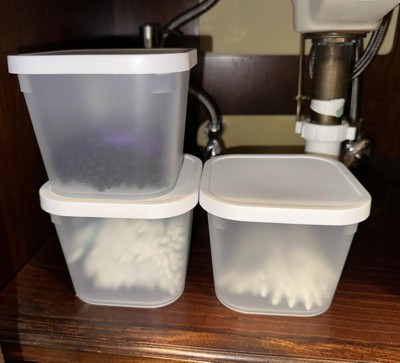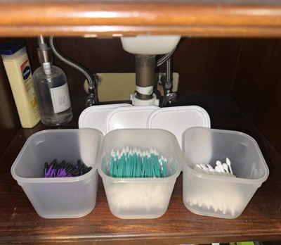 [This review was collected as part of a promotion.] I needed little storage containers to store beauty products rather than leave in an exposed open box. I love that the lids have a tight snap seal so the contents stays clean and hygienic. Also, they stack and nest great and fit perfectly under in my bathroom vanity. They are made of heavy duty plastic and while I’m using them for disposaable beauty applicators, I will definitely use these for any smallish item that is not easily stored out in the open. They are a fabulous value for a three pack. I received an incentive to write this review.
