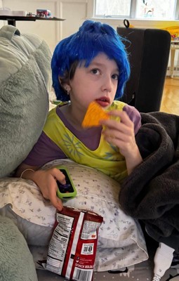Have your child stand in front of the fridge.Mark the top of the head with a magnet. Measure a straight line from floor to magnet.