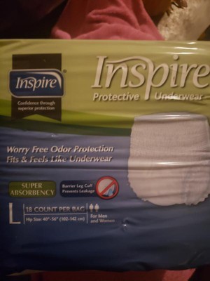 The Inspire Protective Underwear are fantastic! They are a great quality for an affordable price. They are super soft and comfortable and easy to maneuver. They are very absorbent and have a great barrier leg cuff to prevent leaks.