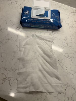 These washcloth wipes work great. They may appear thin at first, but they have a nice stretchy and soft texture that expands as you use it. They hold just the right amount of moisture to make you feel very clean. They leave no residue or scent. They did not irritate or make my very sensitive skin feel dry after use. I would say 2-3 cloths for a head to toe clean.
