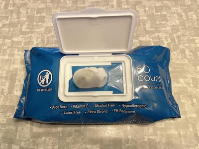 These wipes feel more like body wipes than something you’d use after using the restroom. They’re large and unscented, which I like, but the downsides are that they aren’t flushable and they’re a bit drier than I would prefer.