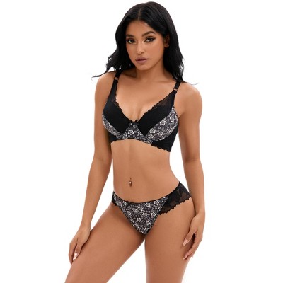 The lingerie set featuring a floral mesh push-up underwire lace bra and matching panty