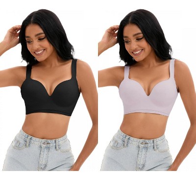 INSPIRE CHIC 2 Pcs Women's Lace Trim Underwire Adjustable Straps Plus Cup Size Push Up Bras - 1 of 4