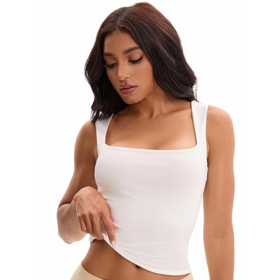 INSPIRE CHIC 3 Choice for Women's Square or V Neck Cami Vest Wide Strap Light Sleeveless Tank Camisoles X-Large White Y2