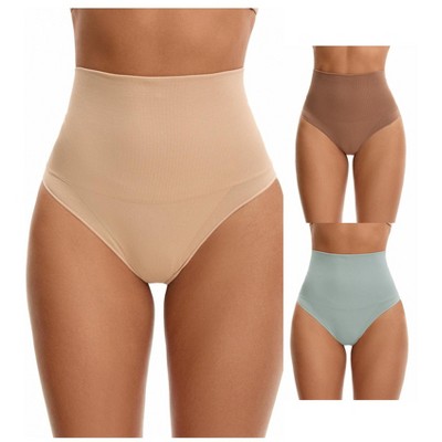 INSPIRE CHIC 3 Packs Women's High Waisted Invisible Tummy Control Stripe Mesh Shapewear Panties 3 Beige Small