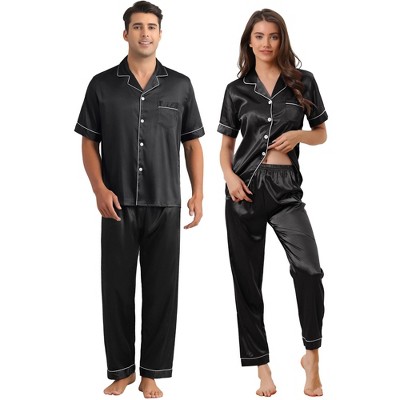 INSPIRE CHIC Couples Pajamas Sets Button Down Short Sleeve 2 Pack Satin Loungewear