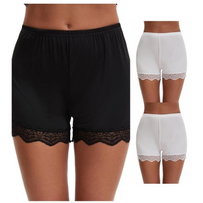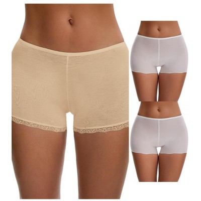 Seamless, Ice Silk, Lace Trim, Slip Shorts for Under Dresses, Elastic, Lightweight, Boyshorts