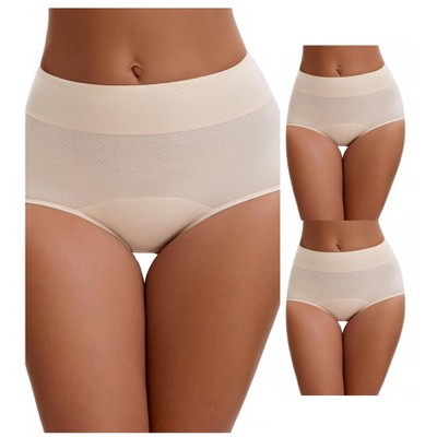 INSPIRE CHIC Leak Proof Briefs for Women's High Waist Elastic Waist Full Coverage Tummy Control Period Underwear 2 Packs 2 Beige Large