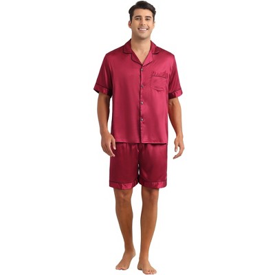 INSPIRE CHIC Men's 2 Pack Sleepwear Button Down Long Sleeve Classic Satin Pajamas Sets 1 Burgundy 1 Dark Green Small