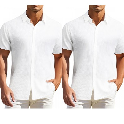 INSPIRE CHIC Men's Casual Long Sleeve Contrasting Colors Striped Henley T-Shirts 2 Packs 2 White XX-Large