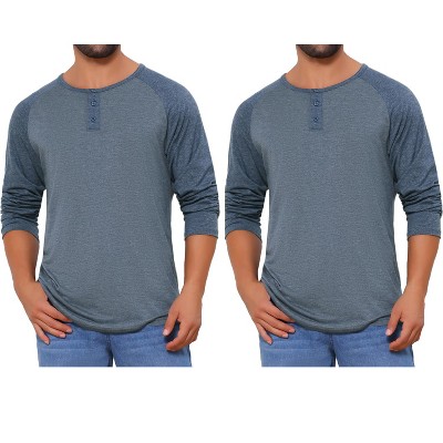 This product includes 2 Packs of T-shirts. The shoulder-to-sleeve construction allows for easy movement, making it great for casual activities. The Henley neck provides adjustable ventilation while the raglan sleeves offer a comfortable fit. The combination of raglan sleeves and button placket creates a distinctive look that is both athletic and stylish. The shoulder-to-sleeve construction allows for easy movement, making it great for casual activities.