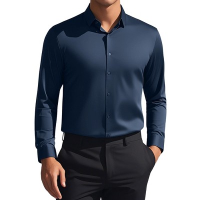 INSPIRE CHIC Men's Long Sleeve Button Down Collar Regular Fit Business Oxford Dress Shirt Dark Blue Small