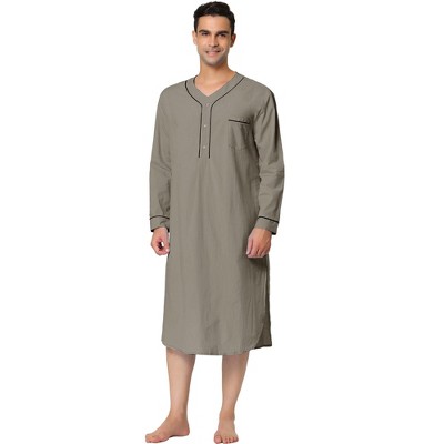INSPIRE CHIC Men's Long Sleeves Banded Collar Henley Nightgown Gray Small