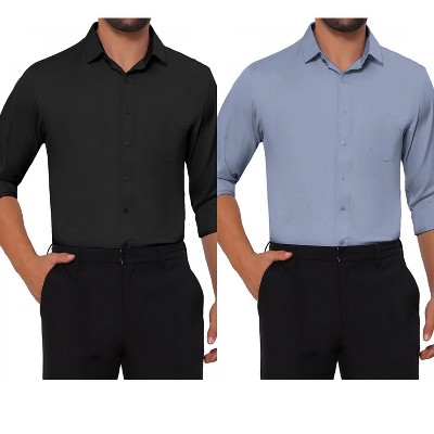 INSPIRE CHIC Men's Point Collar Button Long Sleeve Solid Color Business Dress Shirts 2 Packs 2 Black X-Large