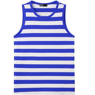 INSPIRE CHIC Men's Regular Fit Short Sleeve Crew Neck Casual Striped T-Shirt Blue White XX Large