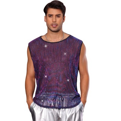 Featuring a metallic texture, this long-sleeve T-shirt makes you eye-catching in the crowd. Made of stretch fabric, it ensures more flexibility when you are moving. Hand Wash Only. You can pair the shining T-shirt with a jacket, jeans, or punk pants for a stylish look. Brilliant bright under the light. Suitable for parties, clubs, discos, festivals, carnivals, nights out, proms, and daily casual wear. Sparkle T-shirts enhance your charm and give you a street-trend look.