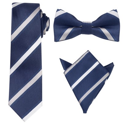 - Includes self-tied necktie, pre-tied bow tie, and pocket square