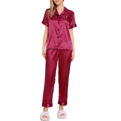 INSPIRE CHIC Men's Short Sleeve Sleepwear Two-Pieces Loungewear Satin Pajamas Set Red Small