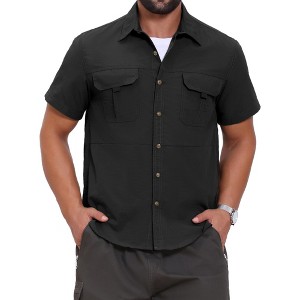 INSPIRE CHIC Men's Solid Two Pockets Short Sleeve Button Down Cargo Shirts - 1 of 4