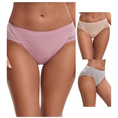 INSPIRE CHIC 3 Packs for Women's Mid-Waisted Loose Elastic Waistband Full Coverage Briefs 1 Beige 1 Light Red 1 Light Pink XX-Large