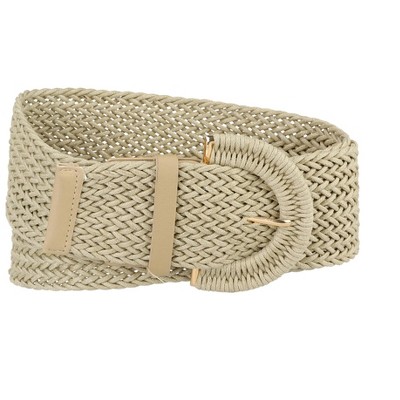 INSPIRE CHIC Women Elastic Wide Waist Belts Metal Buckle Stretchy Belts Black & Beige