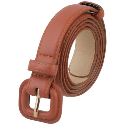 INSPIRE CHIC Women Reversible Faux Leather 0.9" Width Belt with Metal Double Hearts Ring Buckle Belts 1Pc Red Brown 110x2.3cm/43.3x0.9"(LxW)