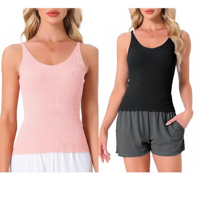 INSPIRE CHIC Women's 2 Pcs Camisole Scoop Neck Sleeveless Tank Undershirt Spaghetti-Strap Pajama Tops - 1 of 4