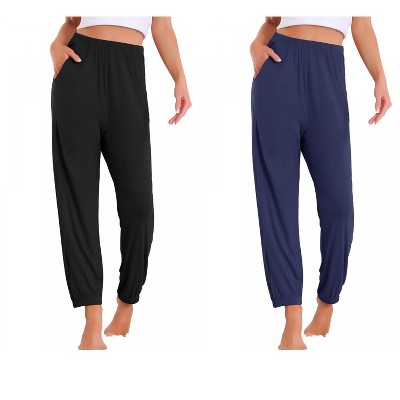 INSPIRE CHIC Women's 2 Pcs Cotton Pajama Bottoms Elastic Waist with Pocket Long Sleepwear Lounge Pants 2 Packs Black XXX-Large