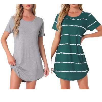 INSPIRE CHIC Women's 2 Pcs Curved-Hem Crew-Neck Striped Short-Sleeve Tee Dress Sleepshirt - 1 of 4