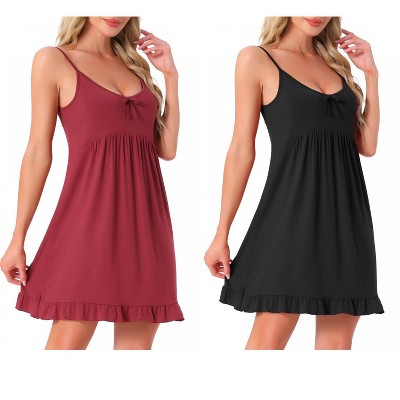INSPIRE CHIC Women's 2 Pcs Modal Soft Spaghetti-Strap Dress Crewneck Sleepwear - 1 of 4
