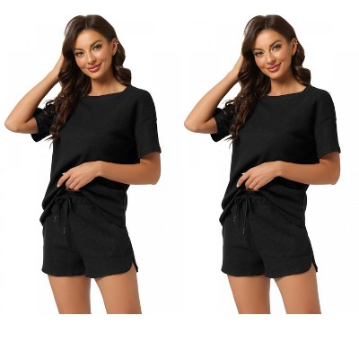 INSPIRE CHIC Women's 2 Pcs Pajama Set Short Sleeve Top with Long Pants Modal Casual Lounge Sets 2 Pack Black X-Large