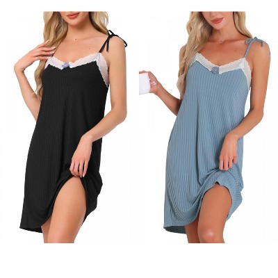 INSPIRE CHIC Women's 2 Pcs Sleepwear Summer Short Sleeves Solid with Pockets Nightgown Large Black/Blue