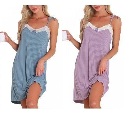 INSPIRE CHIC Women's 2 Pcs Sleeveless A-Line Sleepdress Dual-Strap Knee-Length Cami Nightgowns - 2 of 4INSPIRE CHIC Women's 2 Pcs Sleeveless A-Line Sleepdress Dual-Strap Knee-Length Cami Nightgowns - 3 of 4INSPIRE CHIC Women's 2 Pcs Sleeveless A-Line Sleepdress Dual-Strap Knee-Length Cami Nightgowns - 4 of 4