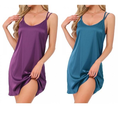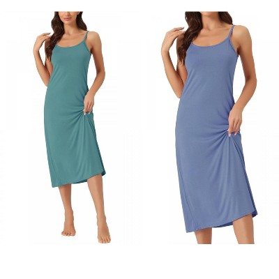 INSPIRE CHIC Women's 2 Pcs Sleeveless Crew Neck Ribbed Knit Nightgown Chemise Peacock Blue/Purple X-Large