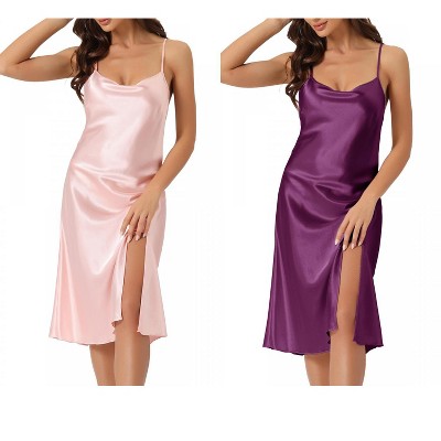 INSPIRE CHIC Women's 2 Pcs Split Hem Pajama Dress Casual V-Neck Short-Sleeve T-Shirt Dress Midi Nightshirt Purple/Pink Small