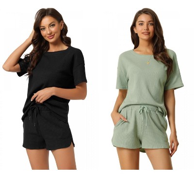 INSPIRE CHIC Women's 2 Pcs Summer Soft Short-Sleeve Tee with Ruffled Shorts Lounge Pajama Set - 1 of 4