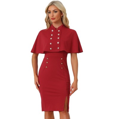 INSPIRE CHIC Women's 2 Pieces Business Long Sleeve Notched Lapel Double Breast with Pockets and Formal Skirt Suit X-Small Wine Red
