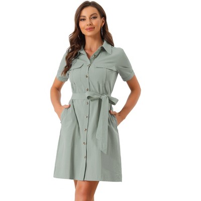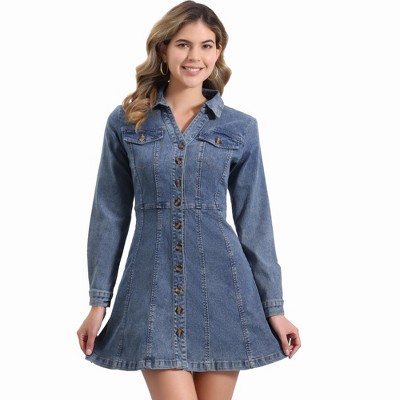 INSPIRE CHIC Women's 3/4 Sleeve Button Down Denim Shirt Dress