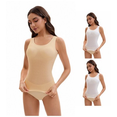 INSPIRE CHIC Women's 3 Packs U Back Tanks with Built-In Bra Silky No Show Basic Camisoles - 1 of 4