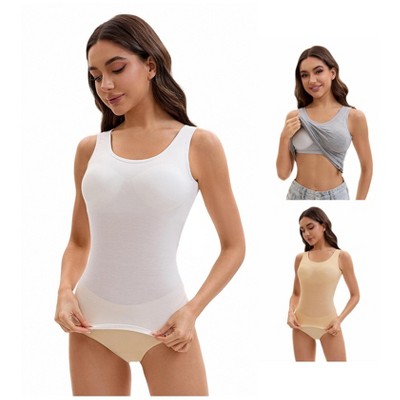 INSPIRE CHIC Women's 3 Pcs Square Neck Plain Back Sleeveless Tank Tops Basic Fitted Camisoles