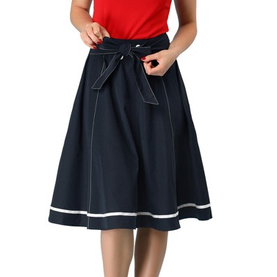 This vintage-inspired A-line midi skirt combines timeless elegance with modern comfort. Crafted from 95% polyester and 5% spandex, its high-waisted, pleated design flatters every figure while offering stretchy ease. The front decorative buttons add a feminine touch, making it versatile for work, dates, parties, or casual outings. Pair it with a chic blouse and heels for office sophistication, or style it with a casual top for everyday charm. A wardrobe essential for effortless grace!
