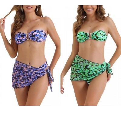INSPIRE CHIC Women's Adjustable Spaghetti Straps Strappy Triangle Bottoms with Mesh Skirt Bathing Bikini Suit 2 Sets - 1 of 4