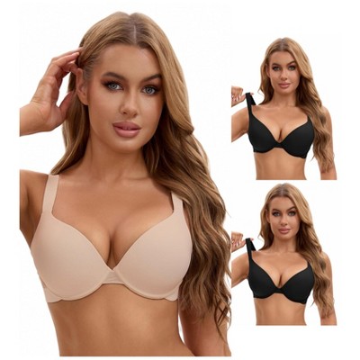 INSPIRE CHIC Women's Adjustable Strap Lace Trim Full Coverage Soft Cup Bras 2 Packs 1 Black+1 Beige 36B