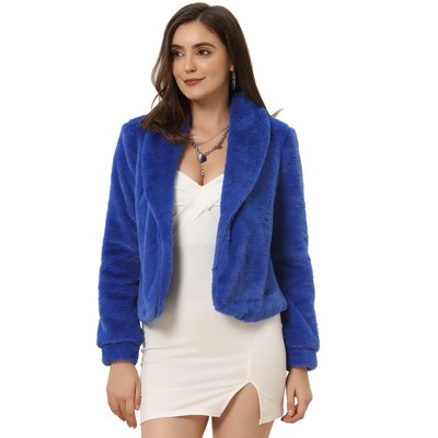 INSPIRE CHIC Women's Winter Cropped Notch Lapel Fluffy Faux Fur Coat - 1 of 4
