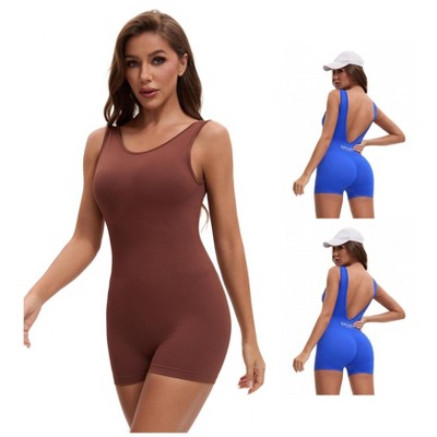 INSPIRE CHIC Women's Bodysuit Workout Jumpsuits Backless Tummy Control V Back Yoga Romper 2 Packs - 1 of 4