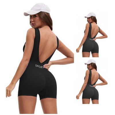 Elevate your activewear collection with a jumpsuit, also known as the v-back Yoga romper. This jumpsuit is designed to enhance your workout routine with its tummy control feature, providing a flattering silhouette while you exercise. The stylish V-back design adds a trendy touch to your fitness wardrobe, making this jumpsuit perfect for yoga sessions, gym workouts, or casual athleisure wear. With a comfortable one-piece design, this jumpsuit allows for ease of movement and effortless style.